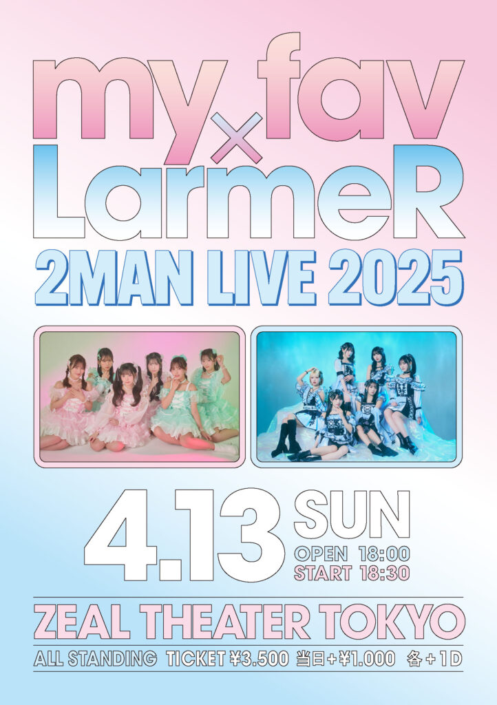 🫧my fav × LarmeR 2マンライブ2025 出演決定🫧 2025/03/16 お知らせ 📍会場:新橋 ZEAL THEATER TOKYO ⏰時間:18:00 OPEN / 18:30 START ⚠️チケットの詳細は後日発表となります